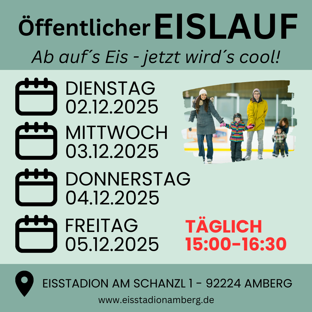 Im Eisstadion Am Schanzl trifft Sport auf Emotion. Ob beim fröhlichen Eislaufen mit Freunden, spannenden Eishockeyspielen oder eleganten Pirouetten auf dem glitzernden Eis – hier spürt man die Faszination des Winters hautnah. Das Stadion bietet perfekte Bedingungen für Freizeitsportler, Vereine und Familien, die unvergessliche Momente auf dem Eis erleben möchten. Komm vorbei und genieße die besondere Atmosphäre – mitten in Amberg!